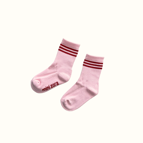 Cozy, cushioned pink socks with red stripes. These comfy cotton socks are designed to feel good, perfect for lounging around while they work on their painting or journal. A fun, casual accessory to keep their feet happy and warm during their mindful activities.